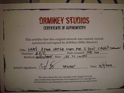 The painting of Shannon is titled: What's a Four Letter Word For I Don't Care?". Shannon's quote from Season One of LOST was also the solution to the puzzle that revealed her portrait in The Harmonic Resonance Project. The painting measures 16"x20" and was limited to an edition of 5. My painting is numbered #4/5. drMikey signed and numbered the back of the painting and also provided a Certificate of Authenticity